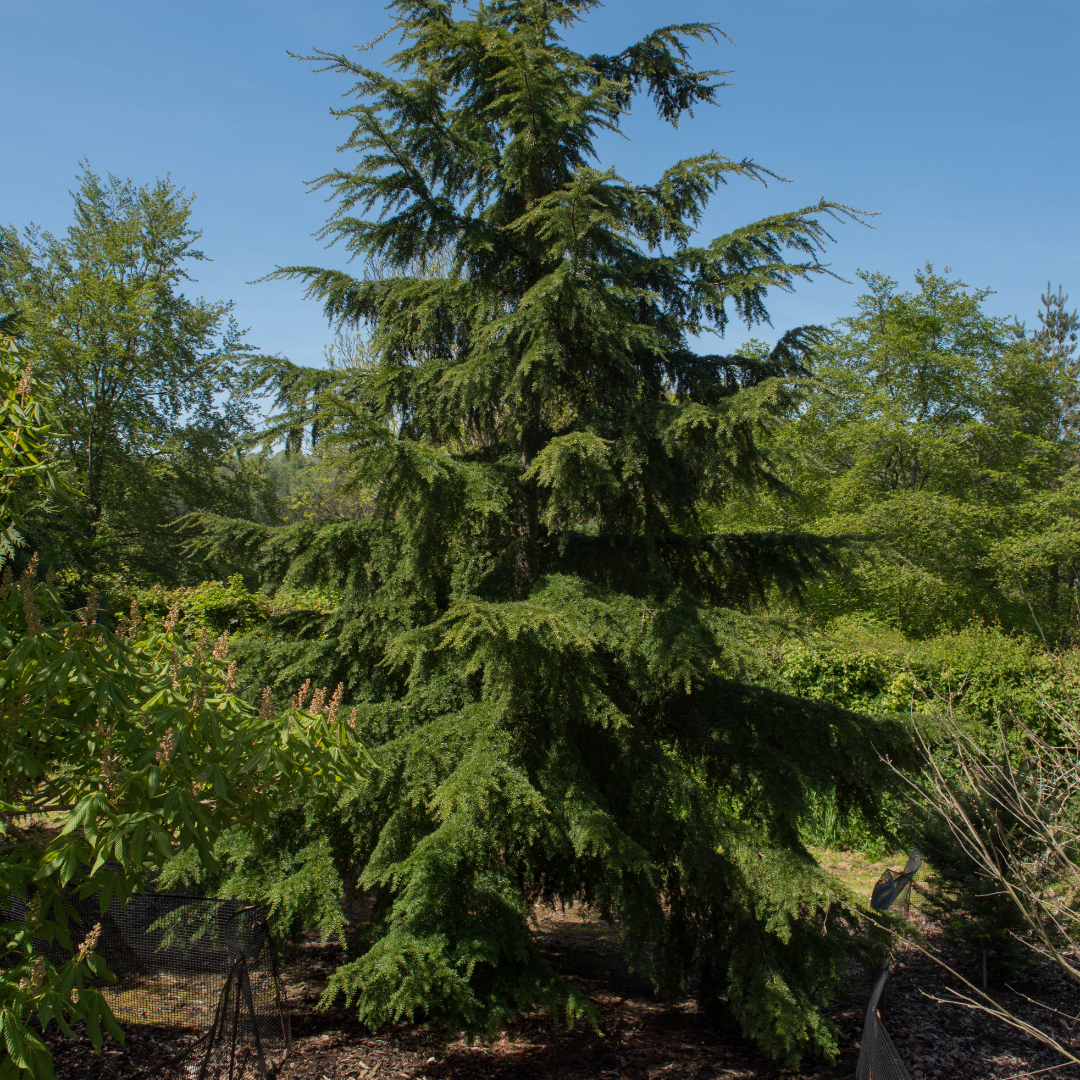 Graceful evergreen with blue green needles and swooping branches elegant for open landscapes.